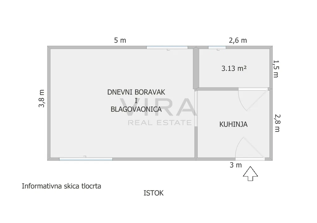 Stan se sastoji od dnevnog boravka s blagovaonicom, kuhinje i kupaonice.