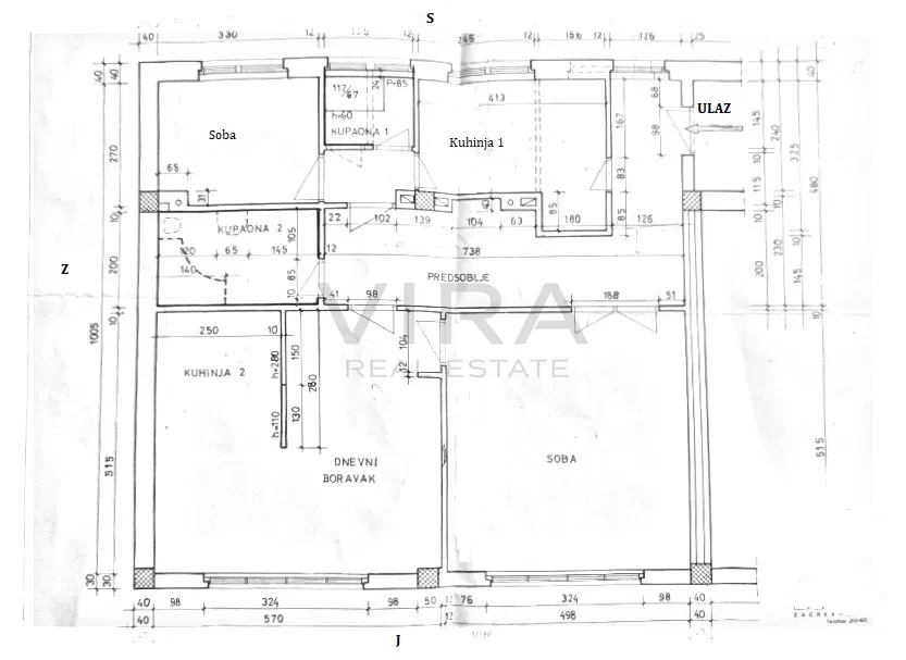 Prodaje se trosoban stan površine 87 (u naravi 95) m2 na drugom katu zgrade bez lifta.