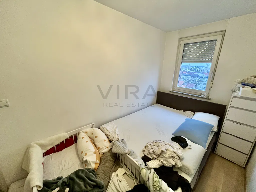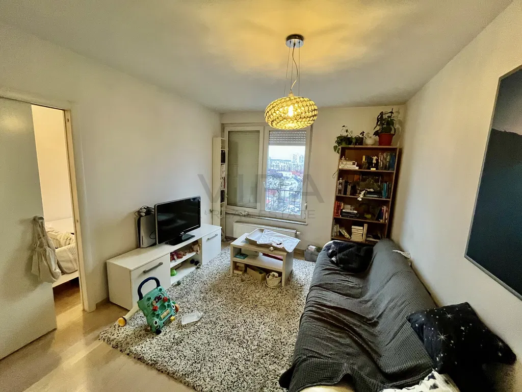 Prodaje se dvosoban stan površine 37m2 na osmom katu zgrade s liftom.