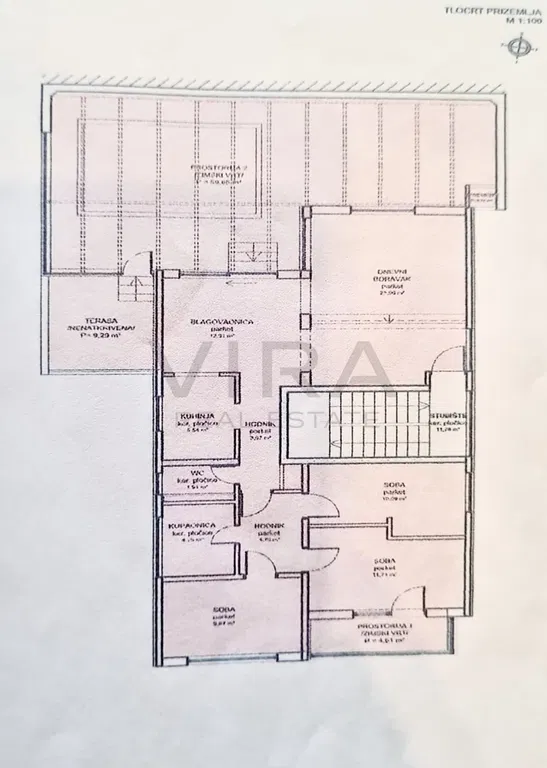 Prodaje se četverosoban stan površine 162 m2 u visokom prizemlju zgrade bez lifta.
