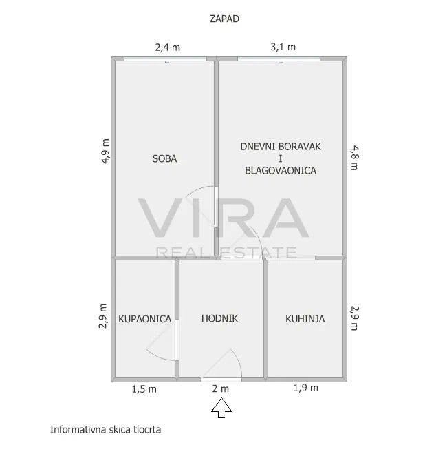 Stan se sastoji od dnevnog boravka, kuhinje, blagovaonice, spavaće sobe, hodnika i kupaonice.