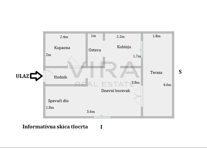 Sastoji se od dnevnog boravka sa spavaćim dijelom, kuhinje, kupaonice, hodnika i terase.