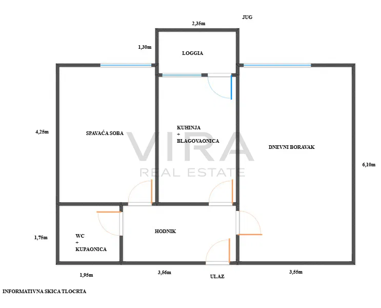 Stan se sastoji od dnevnog boravka, kuhinje i blagovaonice, spavaće sobe, hodnika, kupaonice i wc-a te loggie.
