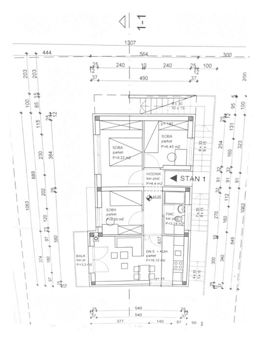 Prodaje se trosoban dvoetažni stan tlocrtne površine 60m2 u prizemlju stambene zgrade bez lifta.