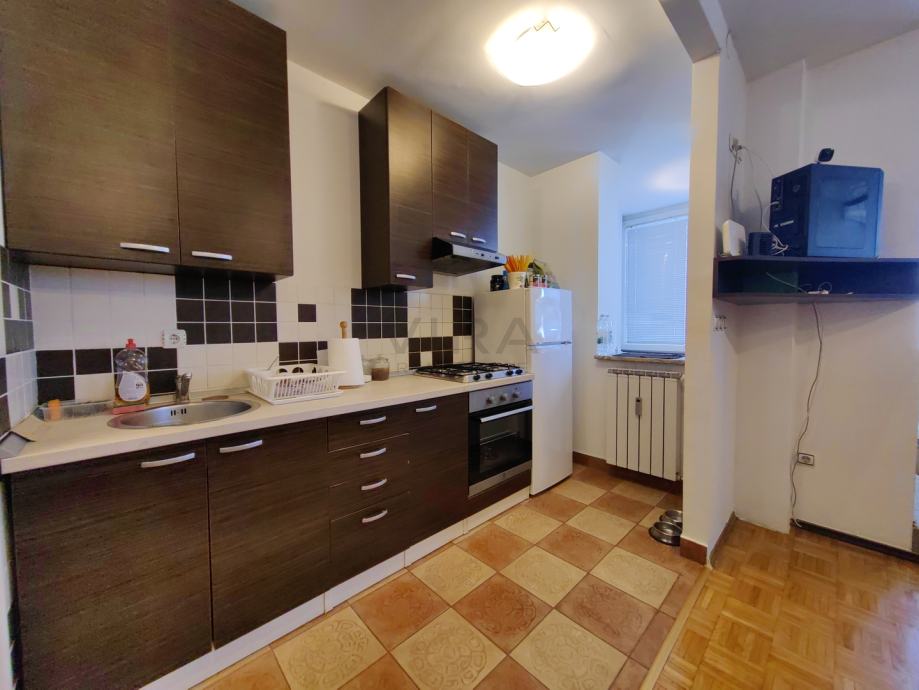 Unutrašnjost stana opremljena je kuhinjom s aparatima, što omogućava praktičnost i funkcionalnost u svakodnevnom životu. Dodatna pogodnost je i klima uređaj koji osigurava ugodnu temperaturu tijekom cijele godine. Grijanje je riješeno plinom, što je ekonomično i efikasno rješenje.