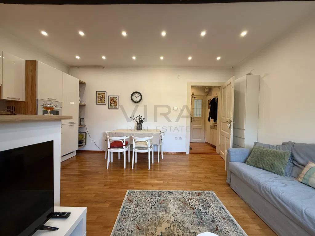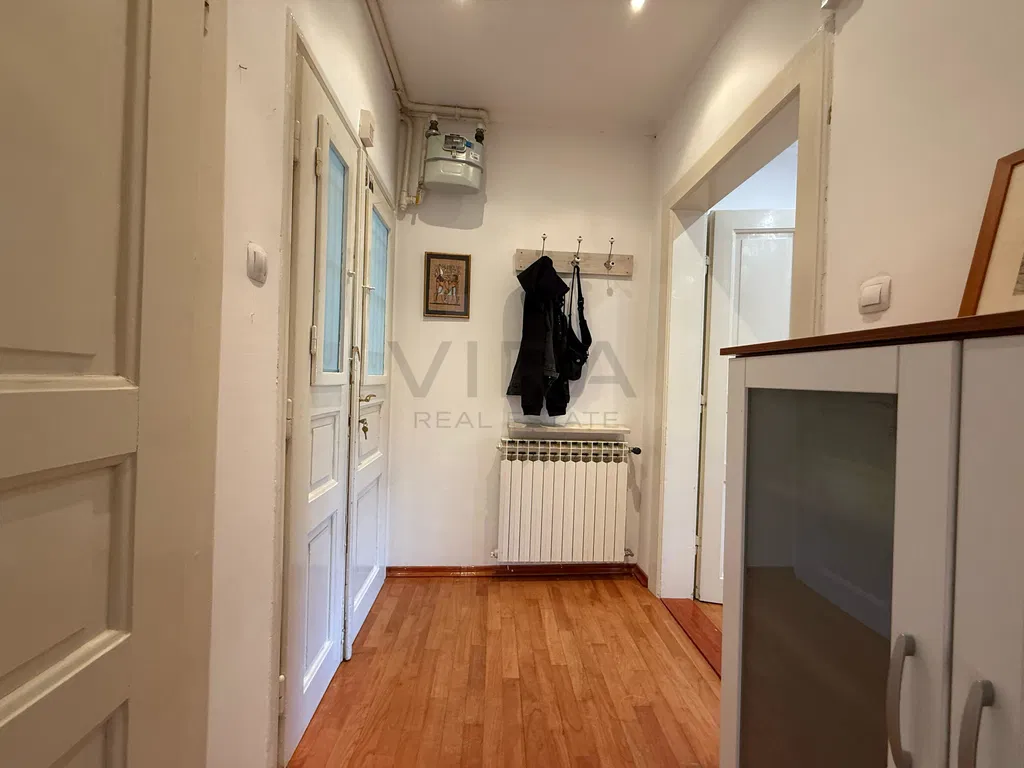 Iznajmljuje se dvosoban stan površine 41 m2 na drugom katu zgrade bez lifta. Zgrada je izgrađena 1930ih godina te ima ukupno dva kata.