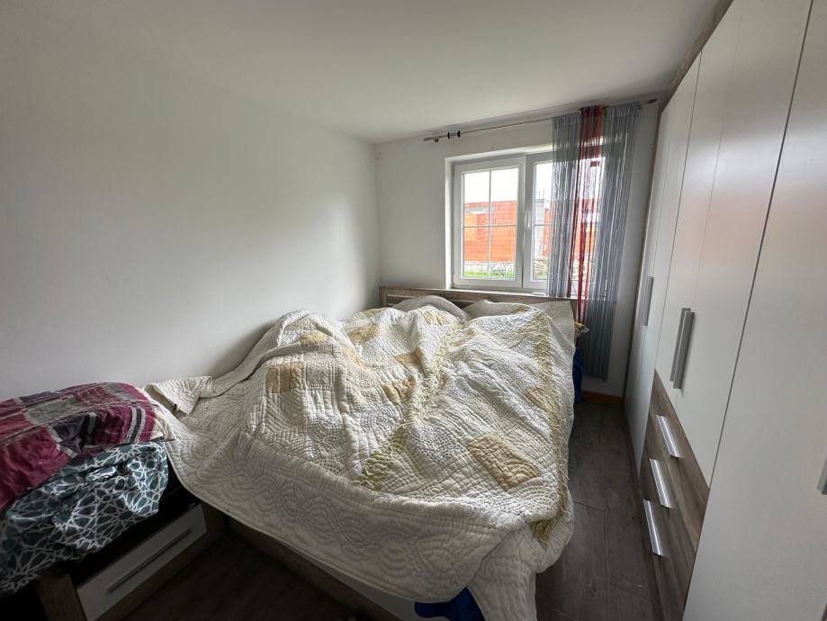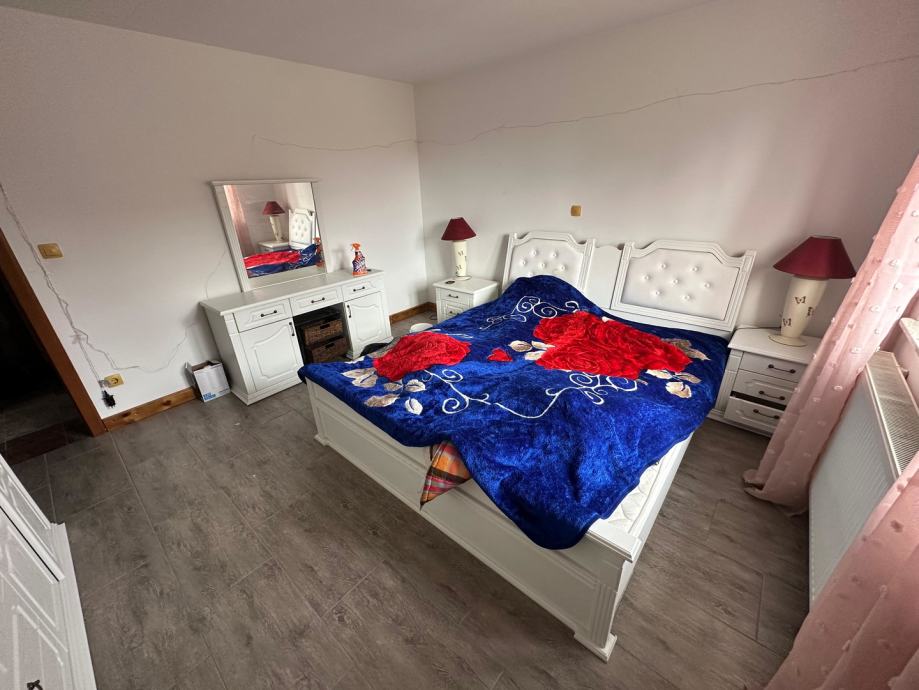 Unutrašnjost kuće odiše toplinom zahvaljujući kaminu, koji pruža ne samo učinkovit sustav grijanja, već i dodaje estetsku vrijednost prostoru. Opremljena kuhinja s aparatima dodatno olakšava svakodnevne aktivnosti, dok prostrani vrt nudi savršeno mjesto za opuštanje na otvorenom.