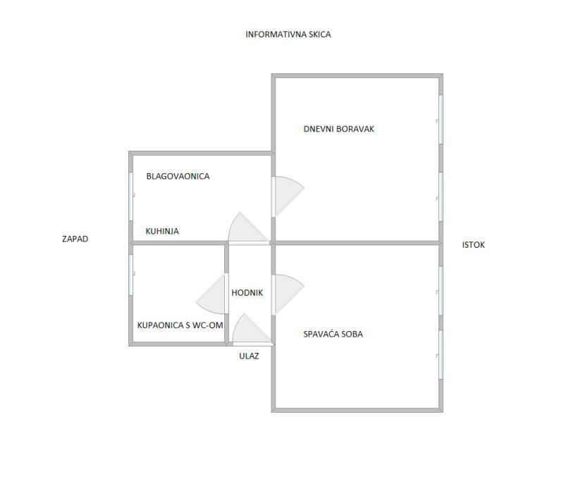 Stan se sastoji od dnevnog boravka, kuhinje, blagovaonice, spavaće sobe, kupaonice s wc-om i hodnika.