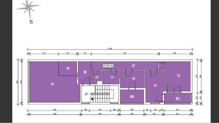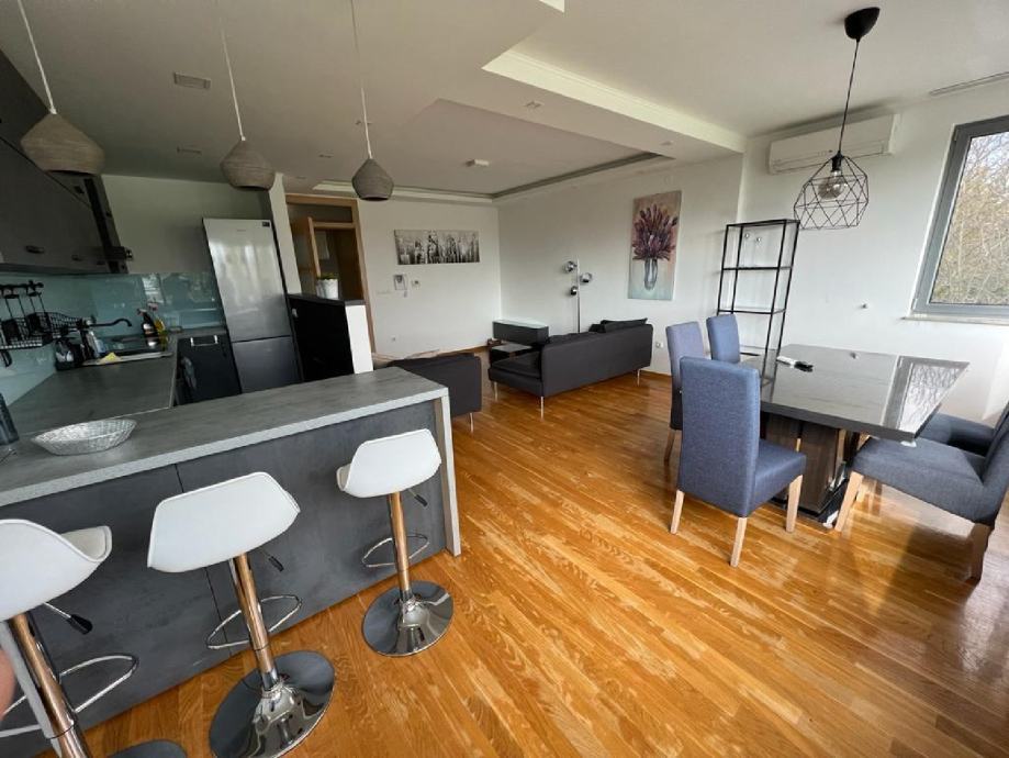 Stan se sastoji od dnevnog boravka, kuhinje i blagovaonice, 3 spavaće sobe, kupaonice, wc-a, 2 loggie i hodnika.