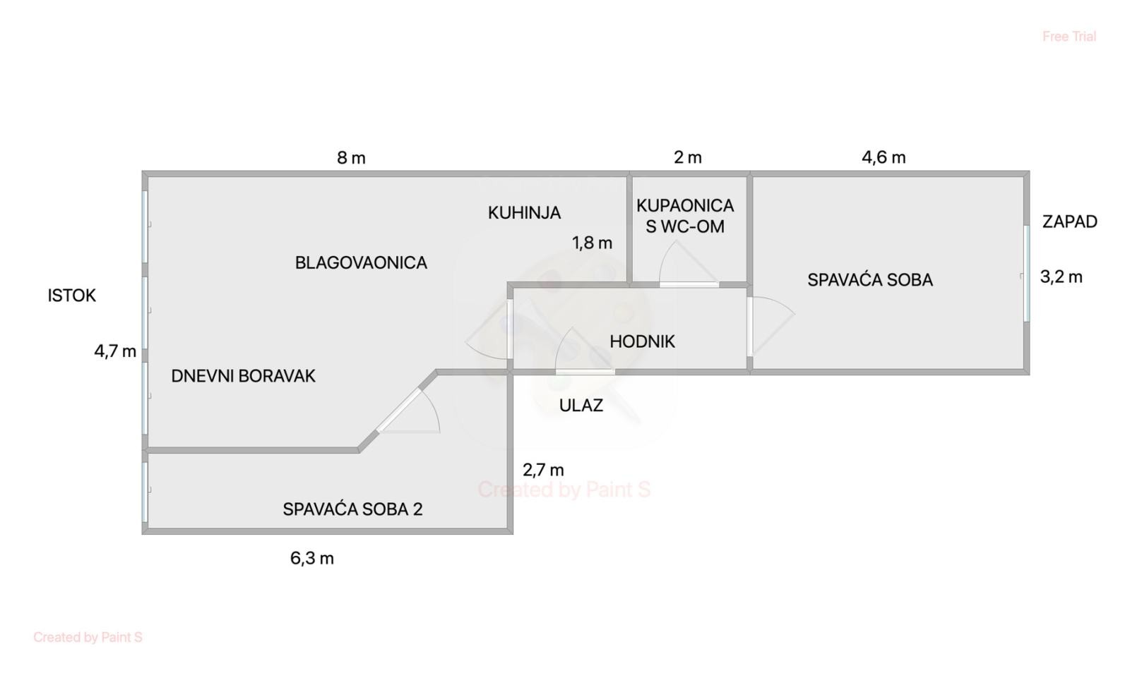 Stan se može pohvaliti izvrsnim prostornim rasporedom, uključujući dvije spavaće sobe, što ga čini idealnim za obitelj ili parove. S orijentacijom prema istoku i zapadu, stan je obasjan prirodnim svjetlom tijekom cijelog dana, što doprinosi ugodnom životnom okruženju.