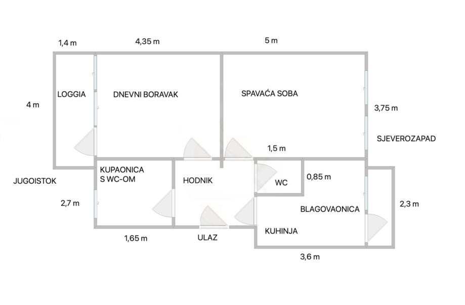 Stan se sastoji od dnevnog boravka, kuhinje i blagovaonice, spavaće sobe, kupaonice, wc-a, 2 loggie i hodnika.