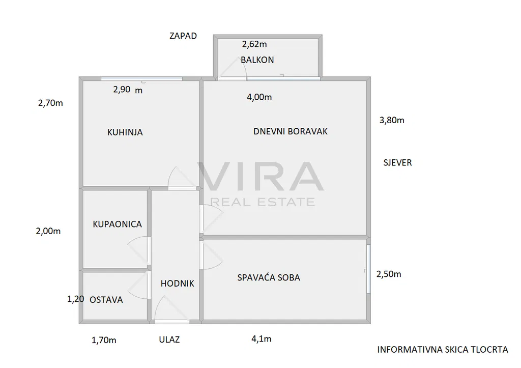 Stan se sastoji od dnevnog boravka, kuhinje s blagavaonom, jedne spavaće sobe, kupaonice s wc-om, hodnika te balkona.