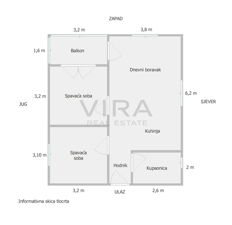 Stan se sastoji od dnevnog boravka, kuhinje, blagovaonice, 2 spavaće sobe, hodnika, kupaonice s wc-om i loggie.