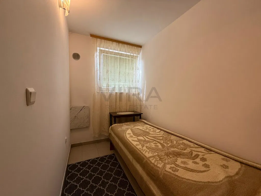 Stan se sastoji od dnevnog boravka s blagovaonicom i kuhinjo, odvojene spavaće sobe te kupaonice s wc-om.