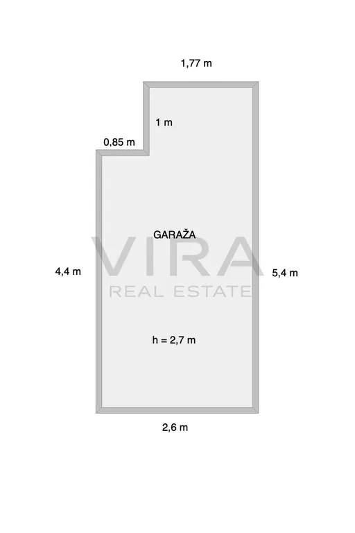 Garaža je dimenzija 2.6 m x 5.4 m.