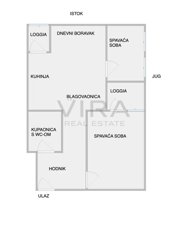 Stan se sastoji od dnevnog boravka, kuhinje, blagovaonice, 2 spavaće sobe, kupaonice s wc-om, 2 loggie i hodnika.