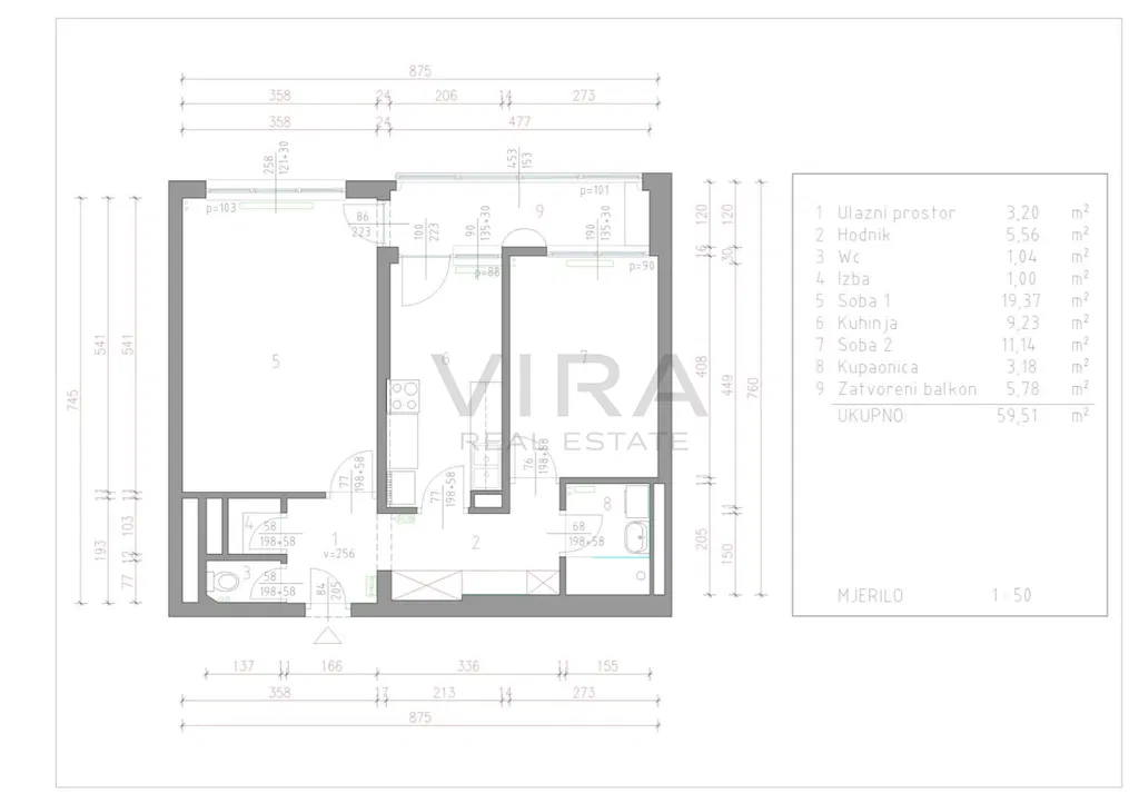 Prodaje se dvosoban stan površine 59 m2 na 7. katu zgrade sa liftom.