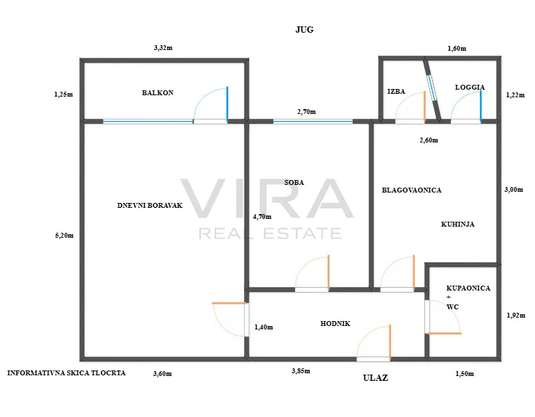 Stan se sastoji od dnevnog boravka, kuhinje i blagovaonice, spavaće sobe, hodnika, izbe, kupaonice i wc-a balkona te loggie.